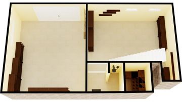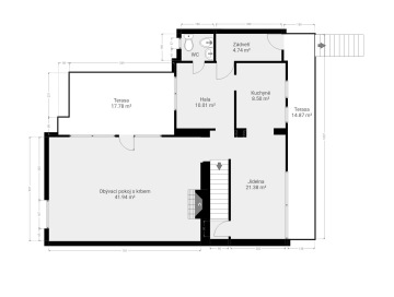 1NP: předsíň, menší hala, WC, kuchyň, jídelna, obývací pokoj.